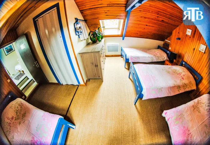 Les deux font un bel ensemble d'une chambre double pour un couple avec la chambre voisine avec 4 lits simple.